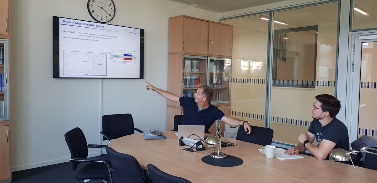 Moritz (Project B2), who gave me insights into his work on magnetoelectric sensor applications for localization. This research will help to improve ultrasonographies, but is also very useful for other types of diagnoses that include sensors.Giuseppe (Projects A8 and B12) and Rahil (Project B12), both of whom are working on magnetic nanoparticles (MIPs) and their use for early detection of inflammation biomarkers in the context of gastric surgeries. This research will help to combat one of the major risk factors of these surgeries.